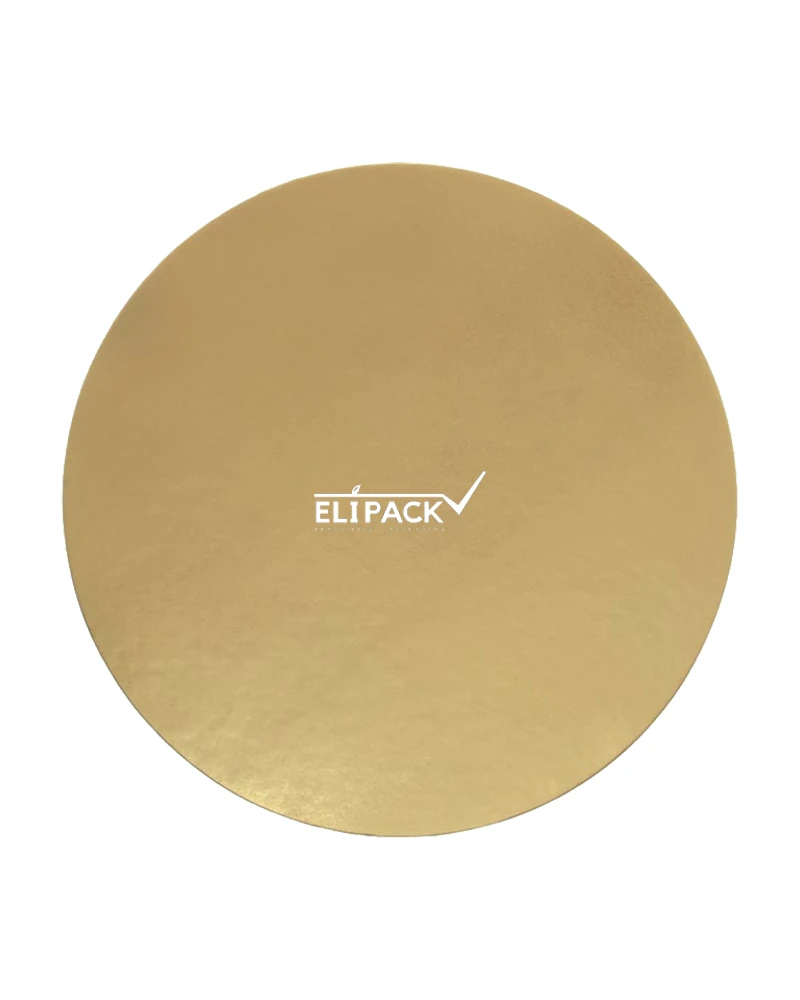 Base de cartón corrugado de 12 mm revestida PET premium que permite el lavado de la superficie con trapo húmedo, de color dorado brillante, para tortas de mayor peso.