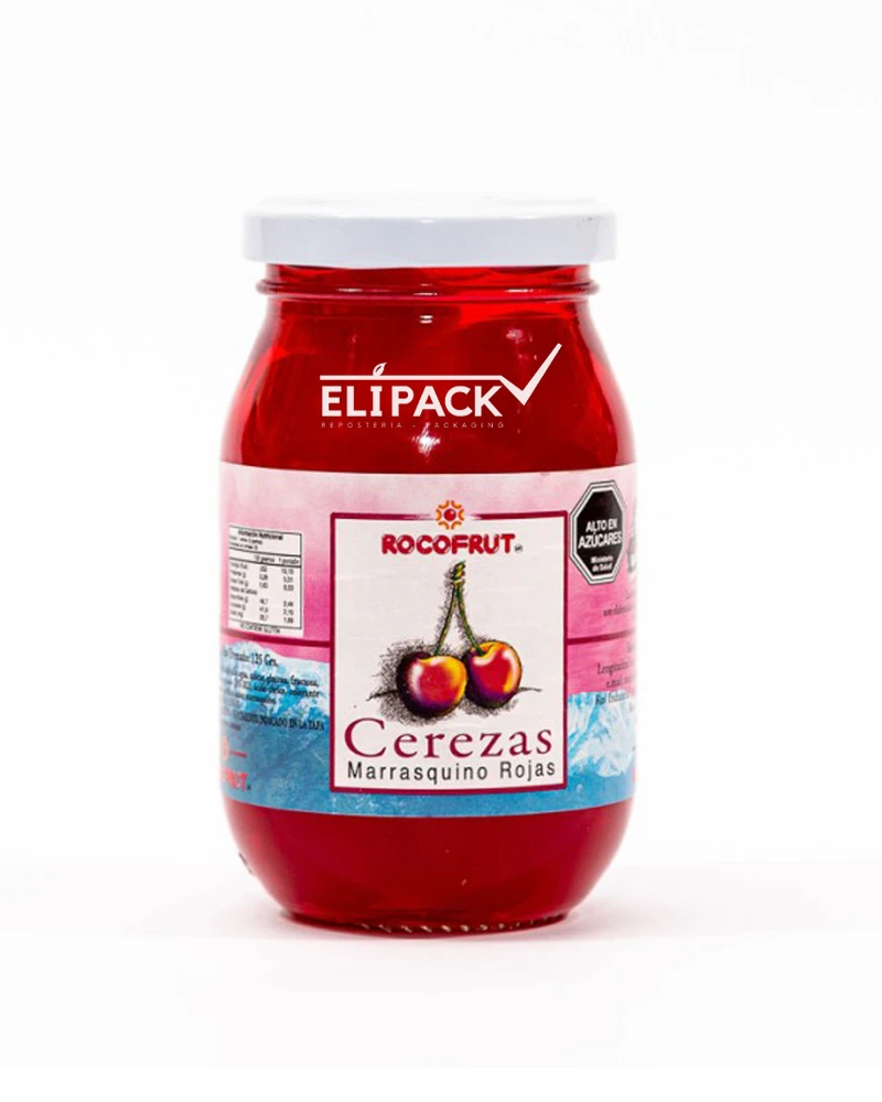 Cerezas de selección, rojas, deshuesadas, sin tallo, preparadas en un dulce y delicioso almíbar, ideal para uso de decoración en pastelera, repostería y coctelería, su sabor único la posiciona como una de las mejores cerezas o también llamada marrasquinos.