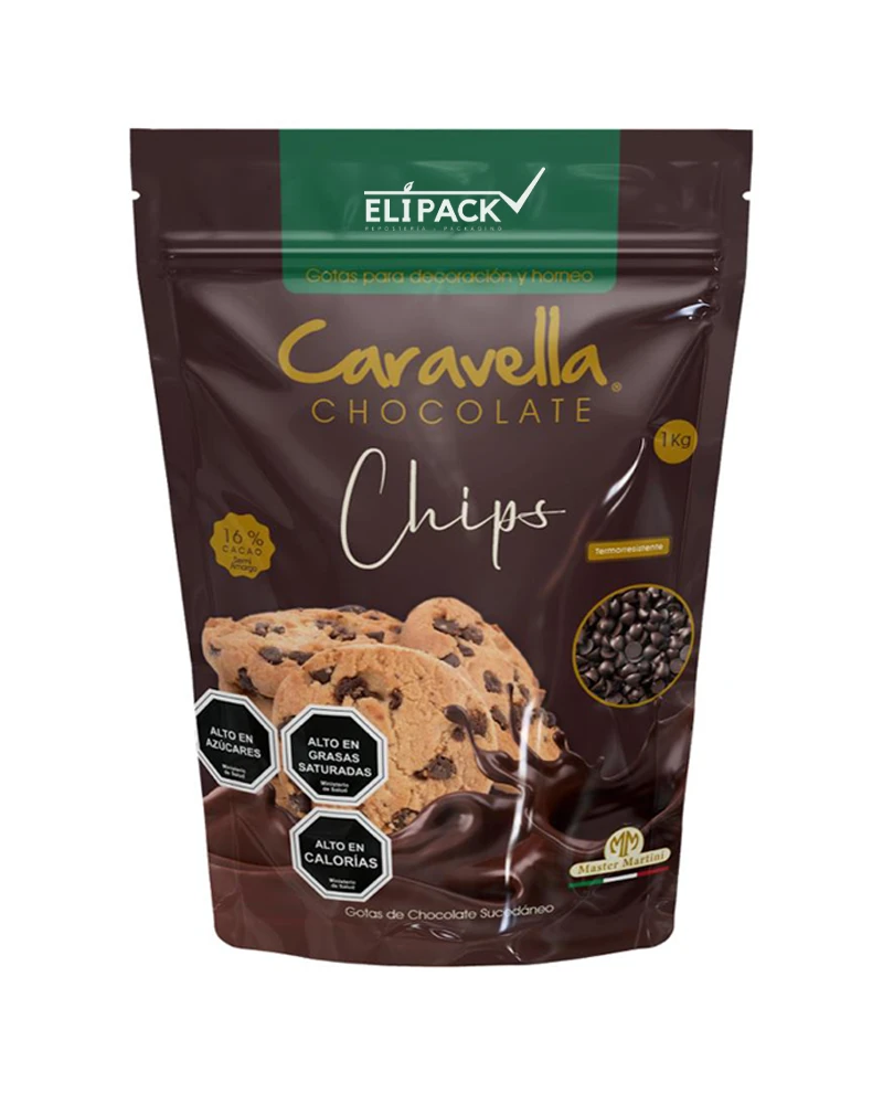 Chip de chocolate semi amargo con porcentaje de cacao, resistente al horneo (termoresistente), especiales para decoraciones de galletas, muffins o diversas preparaciones en repostería ya que no pierde su forma a temperaturas altas.