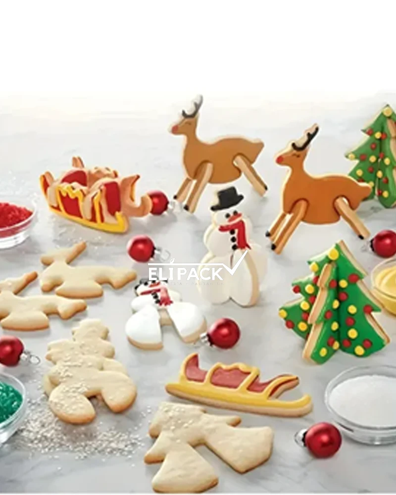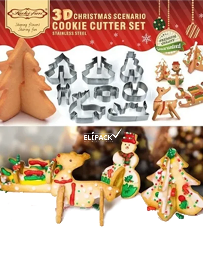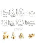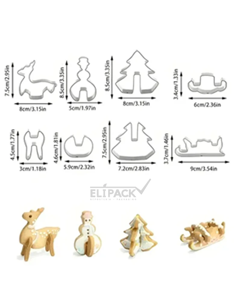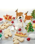 Set de cortador para galleta en forma navideña, su formato 3D hace que las piezas de galletas puedan quedar parada sobre una base, un toque novedoso para las presentaciones navideñas.