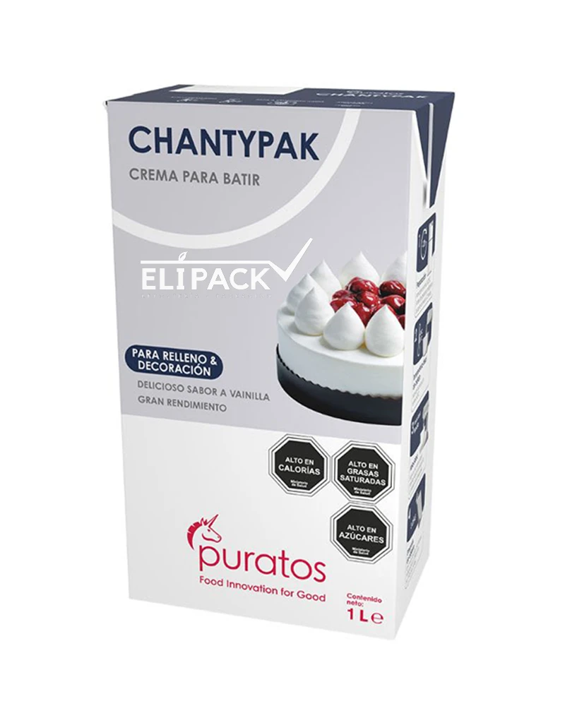 Chantypak es una crema para batir con sabor a vainilla conocida por su naturaleza versátil. Es fácil de incorporar en rellenos, ganaches y mousses para pasteles como eclairs, así como para decorar pasteles, tortas o cubrir postres. Debido a su naturaleza altamente estable, tus aplicaciones permanecen frescas por más tiempo en refrigeradores o congeladores. Chantypak puede batirse hasta 3.5 veces su volumen original y las aplicaciones se benefician de su naturaleza estabilizadora.”