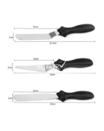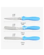 Juego de 3 espátulas para trabajar con tus tortas, cupcakes, galletas y todas tus creaciones. Incluye una espátula recta para terminaciones prolijas , una curvada de punta fina para rellenos y decoraciones finas, la tercera es recta angular para dar terminaciones en bordes.