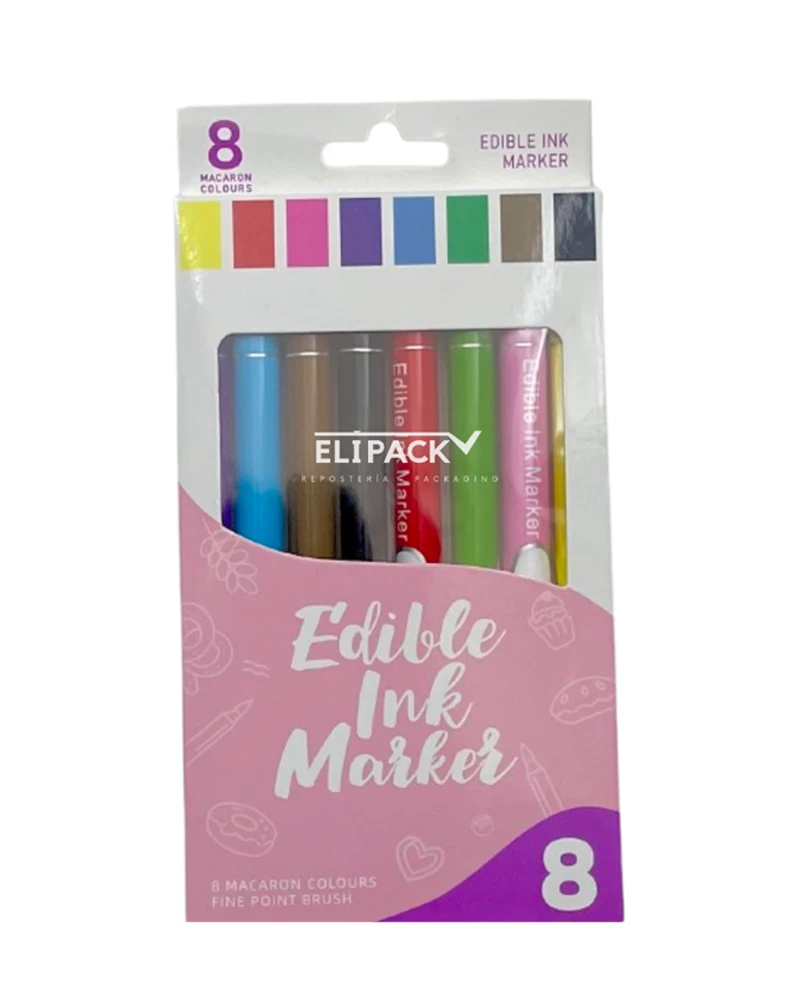 Lápices con tinta comestible, 8 tonos distintos con buen acabado, cada color cuenta con punta fina y gruesa, no es tóxico y da a tus creaciones un toque único, es un herramienta práctica en la repostería.