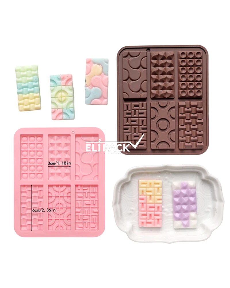Molde de silicona en forma de tabletas con un tamaño individual de 6 x3 x1cm ideal para realizar detalles en repostería o chocolatería
