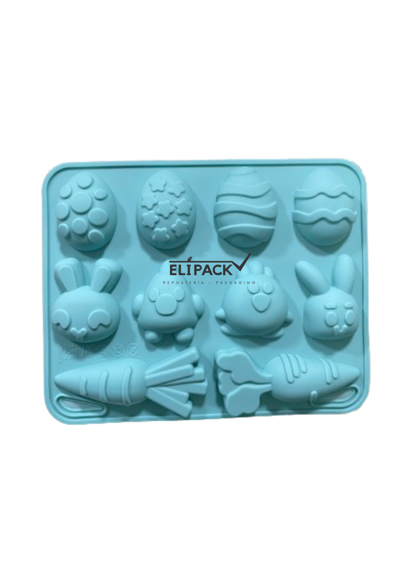 Molde de silicona con diseños de pascua, libre de BPA (No tóxico), máx. de temperatura 240° a -60°, puede ser usado para horno o congelador, ideal para realizar repostería o manualidades.