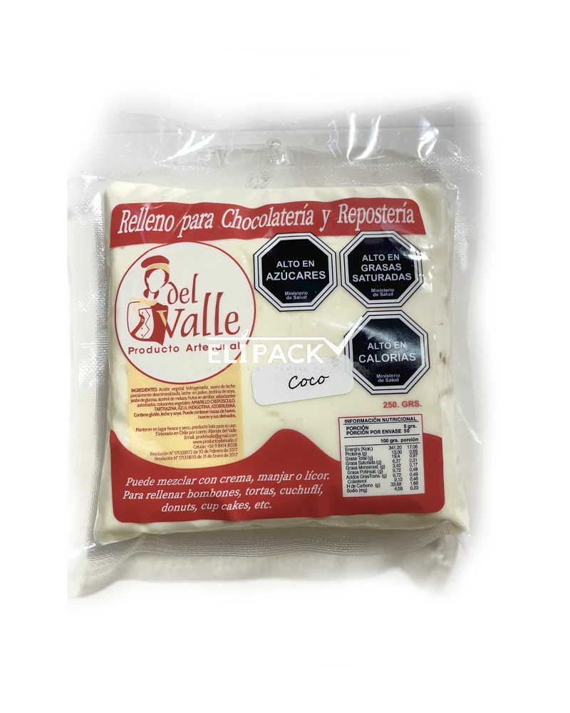 Relleno para chocolatería y pastelería, sirve para rellenar tortas, bombones, cuchufli, alfajore y una versatilidad de dulces reposteros, se puede utilizar de forma directa o mezclandolo con crema , manjar o licor para aumentar su volumen ya que el sabor es concentrado y rinde aproximadamente 1 kilo de manjar. Es un producto que solo se trabaja en frío y tiene larga durabilidad.