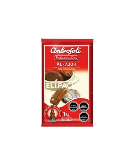 Cobertura de chocolate en barra semi bitter, apto para bañar por su alta fluidez, marca Ambrosoli.