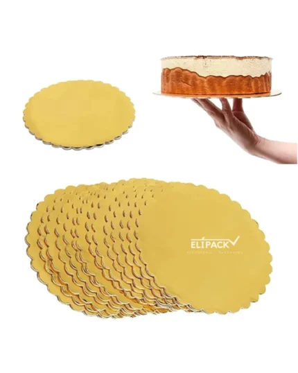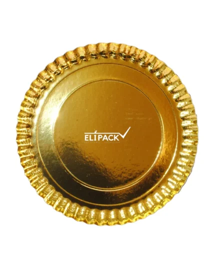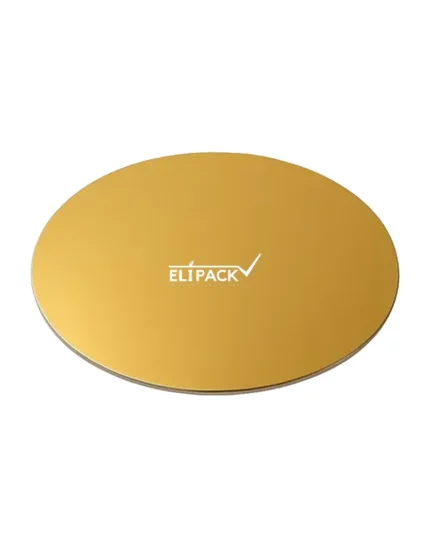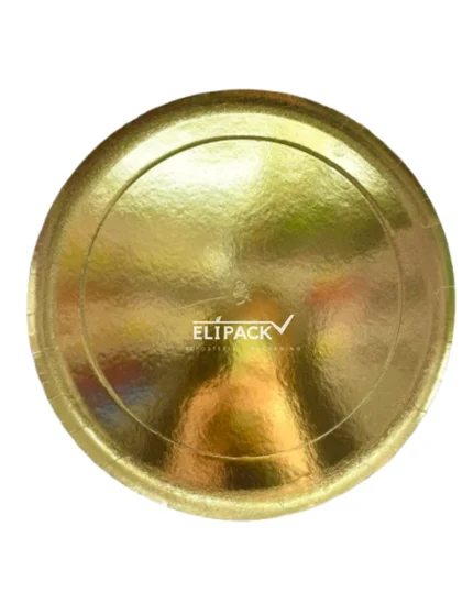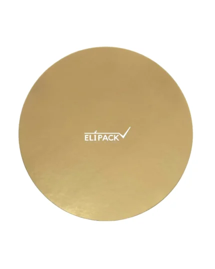 Base de cartón corrugado de 12 mm revestida PET premium que permite el lavado de la superficie con trapo húmedo, de color dorado brillante, para tortas de mayor peso.