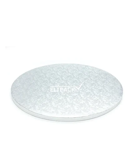 Bandeja plateada de cartón de 40 cm que realzan las presentaciones de tus preparaciones, destacan por su facilidad para limpiar la superficie en caso de errores decorativos como también por su estabilidad.